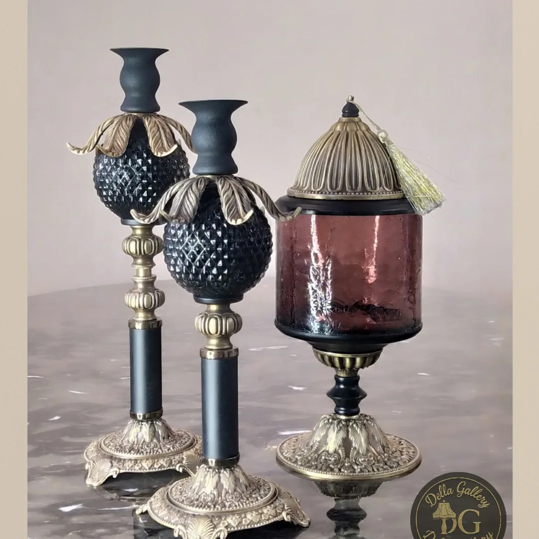 جاشمعیهای منحصربهفرد کلاسیک تلفیقی از هنر، ظرافت و طراحی فاخر برای چشمهایی که جزئیات رو میفهمن. ترکیب بلور و فلز، مناسب میز ناهارخوری، کنسول یا هر فضایی که بخواید جلوهش رو بیشتر کنید.